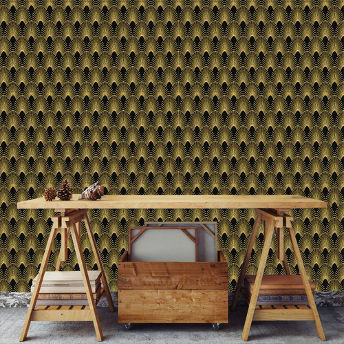 קיר PATTERNS מניפות מעוגלות בגוון הזהוב והשחור.